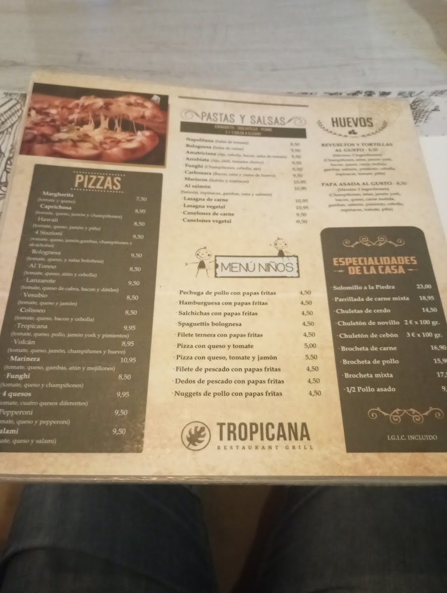 Welcome to Grill Tropicana, a vibrant dining destination nestled along the beautiful promenade in Puerto del Carmen, Las Palmas, Spain. This spacious restaurant offers a delightful blend of cuisine, where flavors and presentation shine in every dish. Patrons rave about the generous portions and excellent service, making it a perfect spot for families and beachgoers alike.